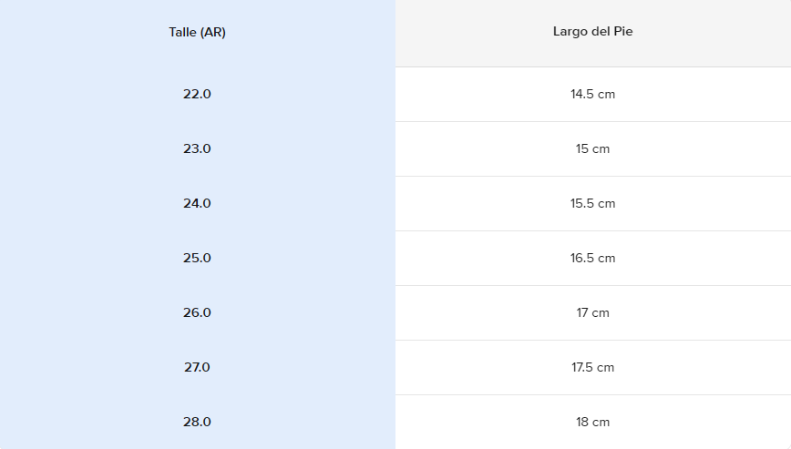 Guia de talles: